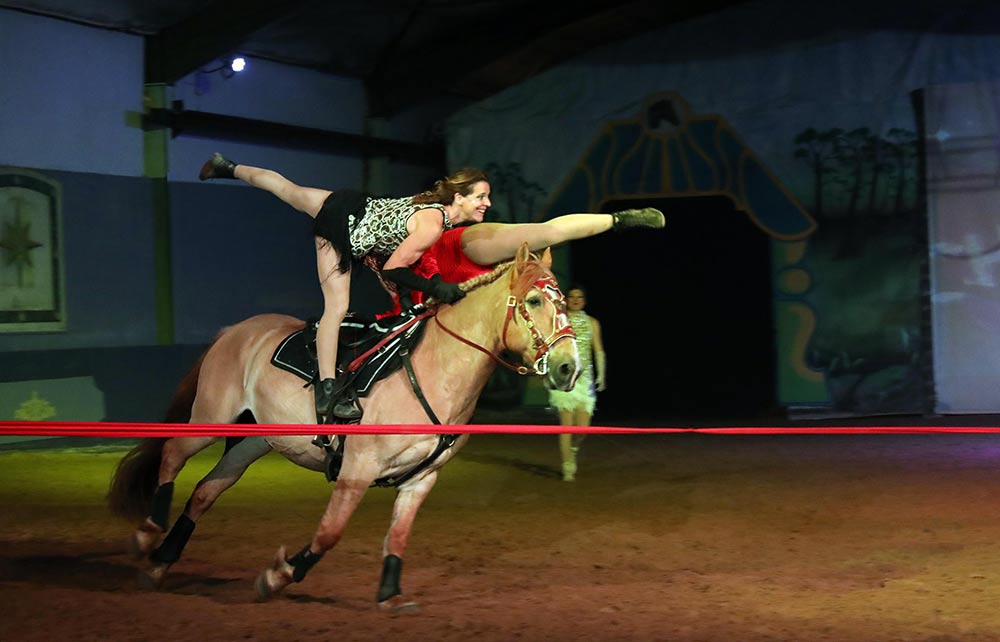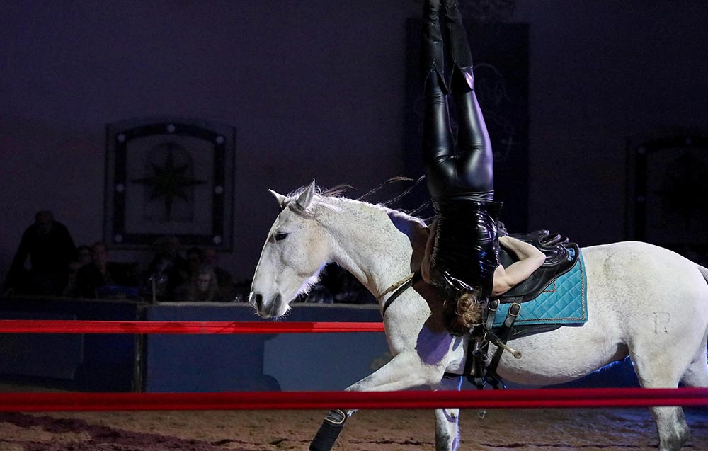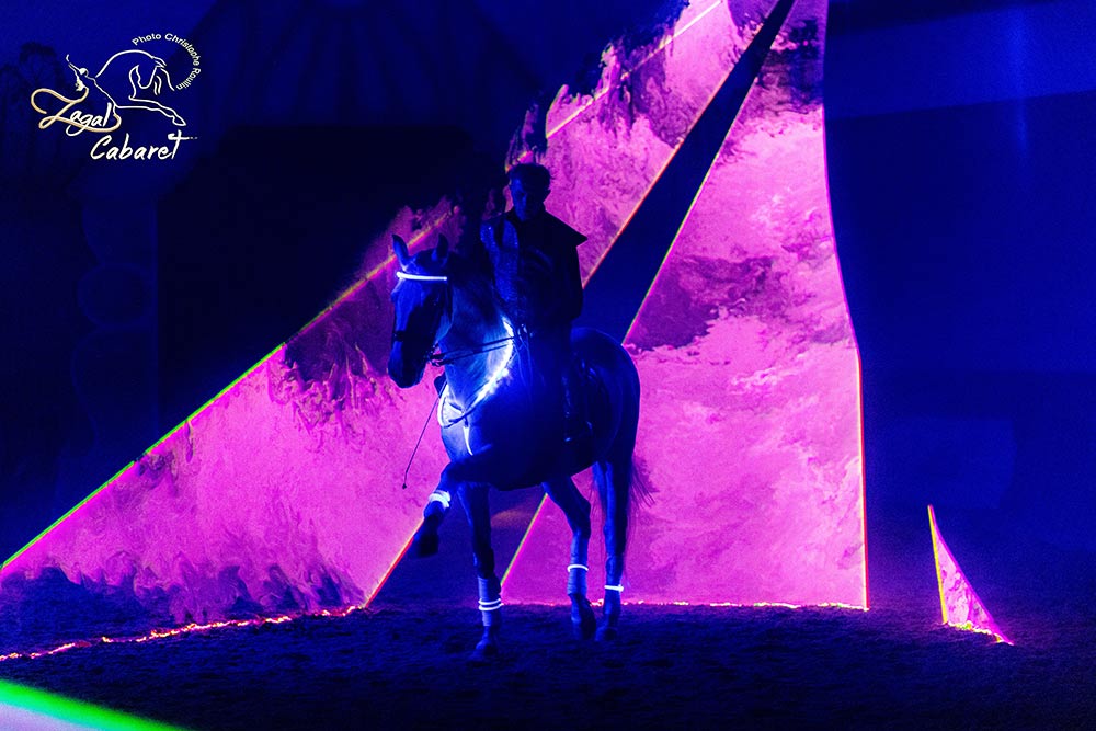 Dans l'écrin de lumière du Zagal Cabaret, laissez-vous transporter par les performances à couper le souffle de nos voltigeurs et cascadeurs d'exception. Découvrez la perfection des tableaux de dressage et de haute école, où chaque mouvement est une symphonie de grâce et de précision, et où la complicité entre l'homme et le cheval crée une évidence élégante et harmonieuse.